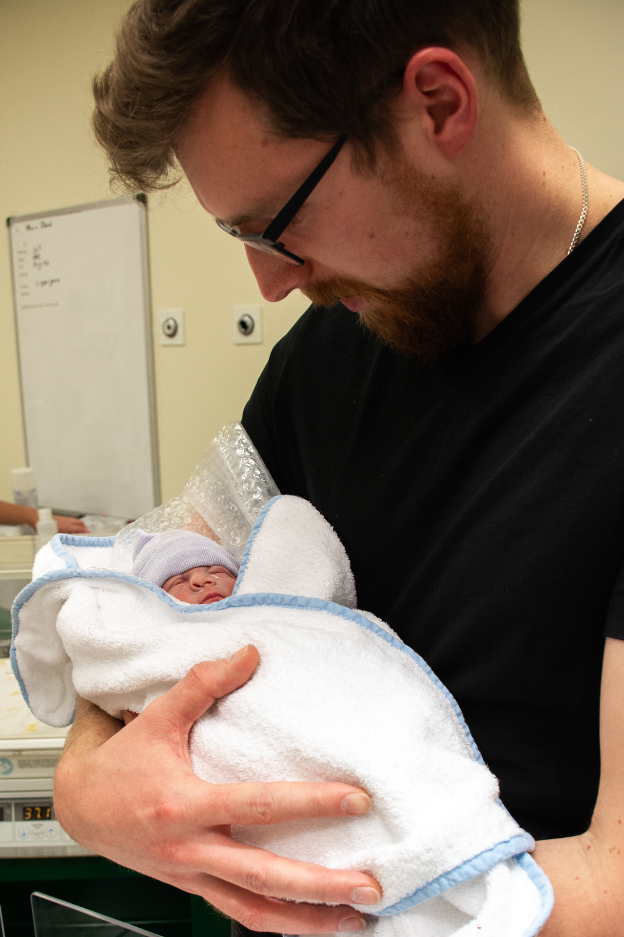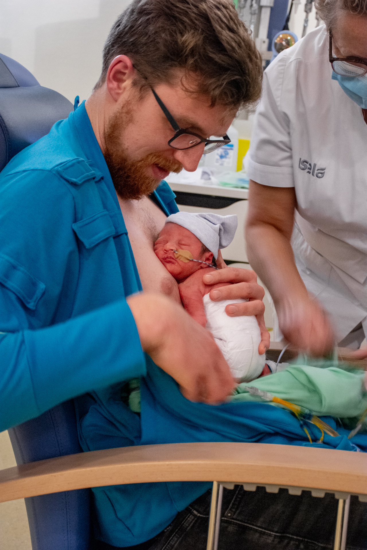 Het moment wat ik dankzij de foto’s goed kan herleven is hoe mijn man nadien ons zoontje komt brengen, met trots in zijn ogen en een mini mensje in zijn armen. Deze foto laat de overweldigende liefde zien die ik voelde en de realisatie in de ogen van mijn man dat hij vader is geworden. Dit beeld heeft mij vaak herinnerd aan die liefde en het geluk, juist toen ik dit niet voelde door de overweldigende zorgen en het gemis van momenten die ik voor ons had gedroomd.
